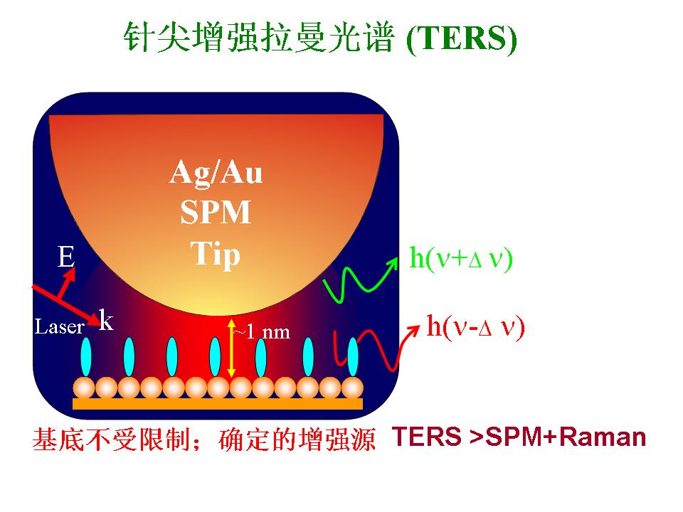 针尖增强拉曼光谱相对于表面增强拉曼光谱有其独特的特点。它可以获得表面形貌和拉曼光谱(化学)信息高灵敏度,可以研究光滑甚至单晶电极表面,可以判断吸附分子的取向;高空间分辨率,可以研究纳米级不均匀性的体系,化学和物理作用分离,探讨SERS机理,可以直接验证电磁场增强机理。 |